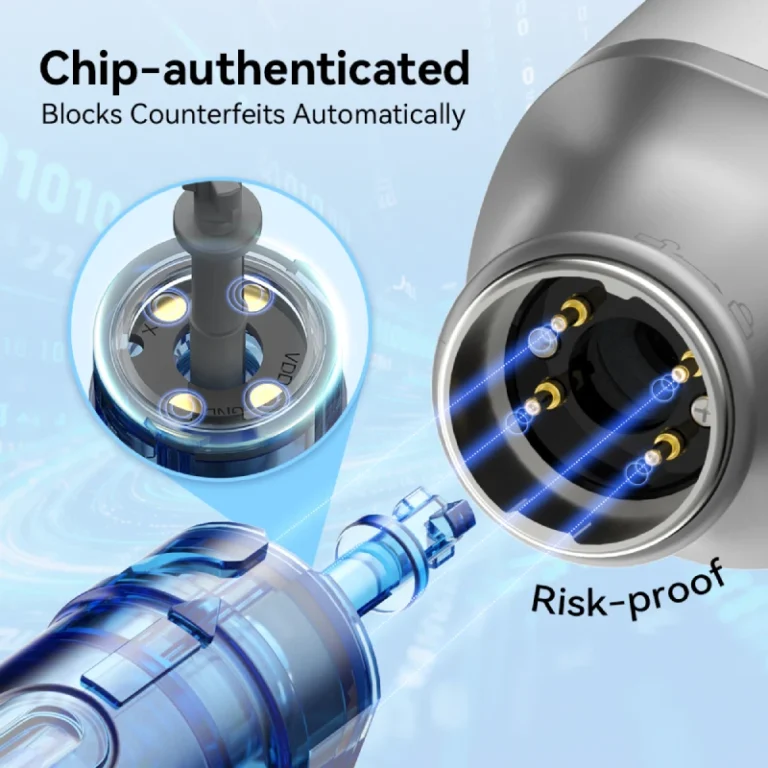 The Dr.pen M9 features an intelligent chip system designed to maintain consistent operation during use. The LED display provides real-time information about device settings, allowing users to monitor their skincare routine parameters.